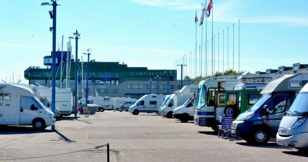 Pirita Sadamas, mere ääres, Pirita jõe kaldal on suveperioodil avatud autokaravani parkla. Võimalus kasutada elektrit, vett, duširuume, sauna. Territooriumil asub mitmeid toitlustuskohti,